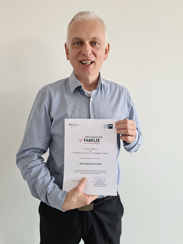Das Unternehmensnetzwerk „Erfolgsfaktor Familie“, initiiert durch das Bundesfamilienministerium, setzt sich zusammen mit den Spitzenverbänden der deutschen Wirtschaft (BDA, DIHK, ZDH) und dem DGB dafür ein, Familienfreundlichkeit zu einem Markenzeichen der deutschen Wirtschaft zu machen. Als ein Beispiel für gelungene und innovative Formen betrieblicher Kinderbetreuungskonzepte war Die Kinderwelt schon sehr früh Mitglied des Netzwerks.